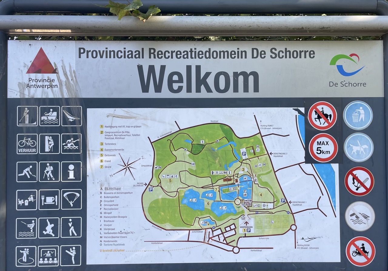 Je kan eventueel op voorhand een bezoekersplan (pdf) downloaden via de website van De Schorre (deschorre.be) waarop je eigenlijk alles kan terugvinden via de handige legende.