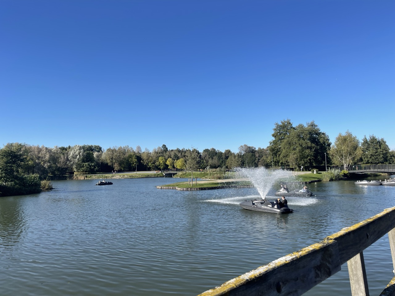 Zoals gezegd, De Schorre is groot en er zijn verschillende ingangen. Je kan vrij vlot parkeren op parking 1 aan de Schommelei of parking 2 aan de Kapelstraat. Vanaf deze parkings kom je op het domein en heb je meteen wat mogelijkheden qua doe-activiteiten. Via het wandelpad aan de vijver kom je aan een infopunt, toiletten en tijdens ons bezoek stond er ook een ijskarretje. Eind 2024 zijn ze gestart met het bouwen van een nieuwe brasserie. Vanaf oktober 2024 is De Musette (café) neergepoot op een tijdelijke locatie. Maar ook bij dat centrale punt aan de vijver, in 2025 dus, zal men een nieuwe beleving erbij hebben. Noteer het alvast in je agenda als tip.