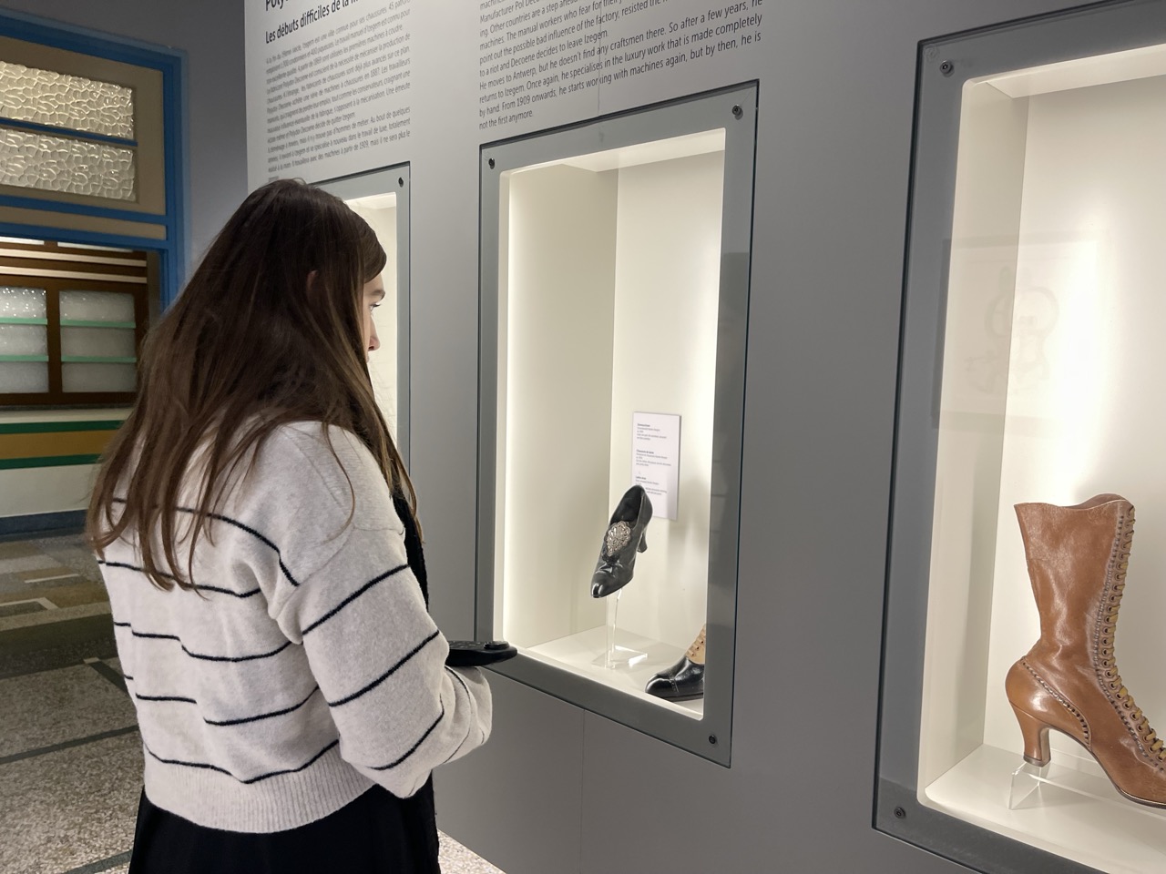 Mijn dochter gaf bij de eerste vitrines meteen de opmerking: “Amai, wat hadden die koningen en dames toch kleine en nauwe voetjes, ik zou nooit in die laars kunnen”. Maar veel te krappe schoenen dragen, was een symbool van status. En inderdaad, onze voeten evolueren, we hebben allemaal een maatje meer ondertussen.